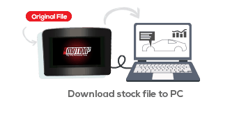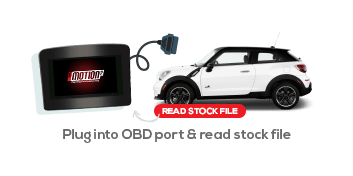 Plug the emotion handset into your vehicles OBD port, ensure the ignition is on and read the stock file from your vehicle selecting “Tuning” then “Reading”.