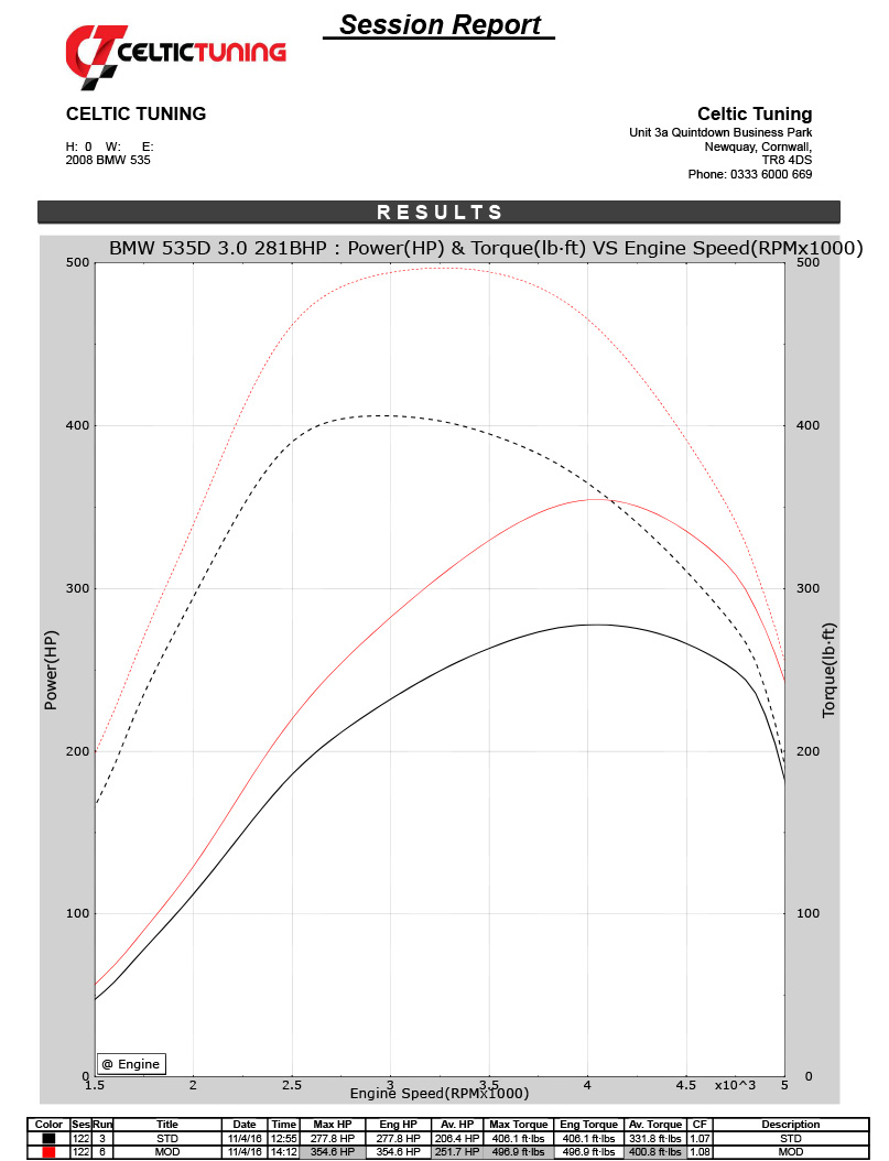 The new 3.0 Twin turbo engine fitted to the 335d & 535d variants is a truly impressive feat of engineering. With two inline turbos it provides unstoppable performance from very low rpms. The smaller turbo is used for quick boosting off the mark up to 3000rpm at which point the larger turbo takes over to provide top end torque thus eradicating the lag which is evident on all large turbo engines. The power once remapped by ourselves is truly impressive and really needs to be experience to be believed. We remove the 155mph speed limiter for those wishing to test the genuine 170mph+ capabilities. We develop all of our software on the rolling road to ensure accuracy in terms of both power delivery and also to ensure fueling, boost pressures and exhaust gas temperatures are all within tolerance. Our aim is for maximum power whilst maintaining optimum reliability.