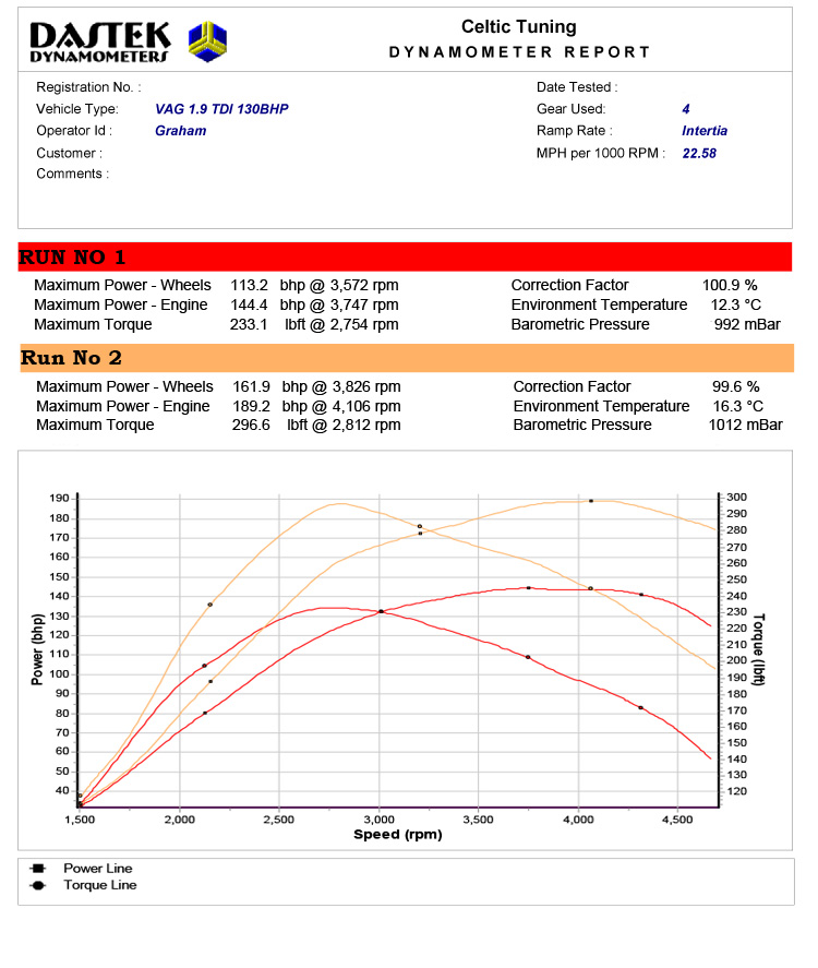 The 1.9 TDi 130bhp utilises a mixture of Honeywell & Garrett Turbo chargers depending on application. All the 130?s are fitted with side mounted intercoolers which provide good performance from the PD engine. We utilise torque limiters in our modified software to ensure the engine speeds reach 2,250rpm before bringing in maximum torque, this ensures a higher lbft torque figure to be achieved whilst maintaining clutch life. The output we set on these engines varies according to vehicle as we tune to ensure clutch life is maintained for standard vehicles. We can achieve figures well over 250bhp with the fitment of uprated turbos and front mounted intercoolers. We develop all of our software on the rolling road to ensure accuracy in terms of both power delivery and also to ensure fuelling, boost pressures and exhaust gas temperatures are all within tolerance. Our aim is for maximum power whilst maintaining optimum reliability.